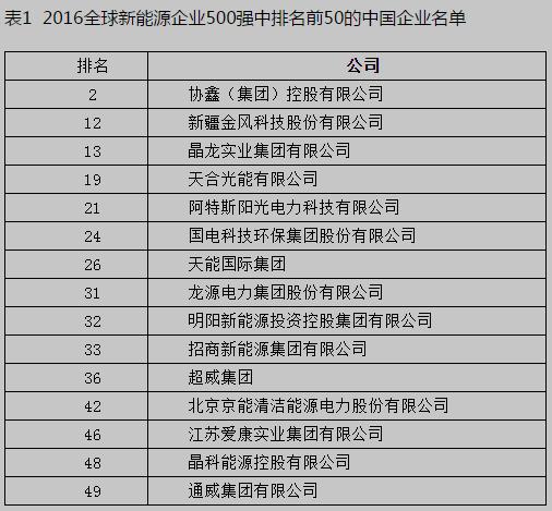根據(jù)2016全球新能源企業(yè)500強(qiáng)名單,2016年500強(qiáng)上榜企業(yè)最低營(yíng)業(yè)收入再邁上一個(gè)新臺(tái)階,達(dá)7.58億元人民幣。500強(qiáng)企業(yè)的總營(yíng)業(yè)收入首次突破3萬億元人民幣,達(dá)到30666億元人民幣。與此同時(shí),中國(guó)企業(yè)在企業(yè)競(jìng)爭(zhēng)力、產(chǎn)業(yè)鏈完整性上全面、快速發(fā)展。