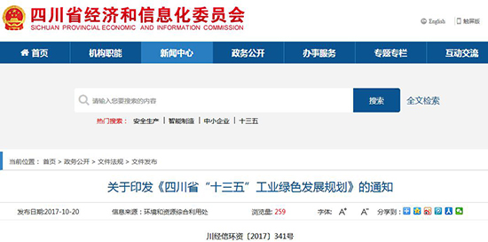 四川省出臺(tái)了《四川省“十三五”工業(yè)綠色發(fā)展規(guī)劃》