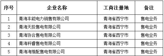 青海電力交易中心新公示5家售電公司