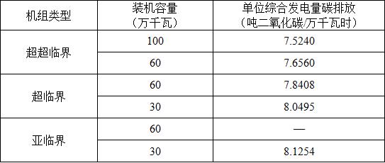 燃煤電廠各機組標桿值的選取標準為:超超臨界以及60萬千瓦超臨界機組參考《煤電節(jié)能減排升級與改造行動計劃(2014-2020)》(發(fā)改能源〔2014〕2093號)中的先進值,30萬千瓦超臨界及亞臨界機組采用本省納入企業(yè)同類型機組現(xiàn)役最先進值(具體數(shù)值見附件1-2);采用天然氣、煤矸石等其他燃料的發(fā)電企業(yè),其標桿值等于企業(yè)基準年間單位綜合發(fā)電量碳排放量的加權(quán)平均值,每年碳強度的權(quán)重為當年綜合發(fā)電量占三年綜合發(fā)電總量的比例。