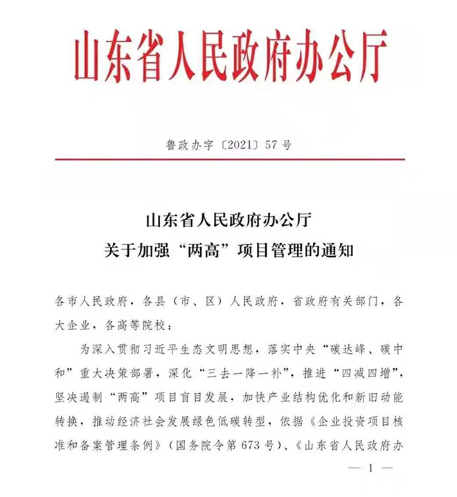 山東:嚴(yán)控“兩高”項(xiàng)目(高耗能高排放項(xiàng)目)把不符合要求的“兩高”項(xiàng)目堅(jiān)決拿下來(lái)。