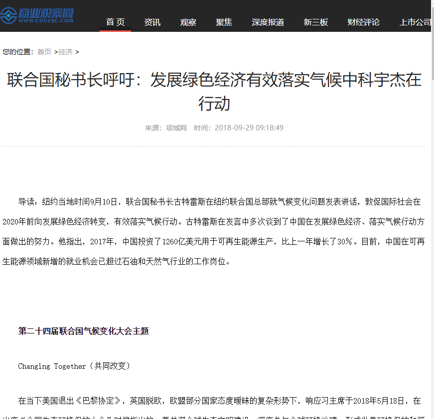 媒體爭相報(bào)道:發(fā)展綠色經(jīng)濟(jì)有效落實(shí)氣候中科宇杰在行動(dòng)